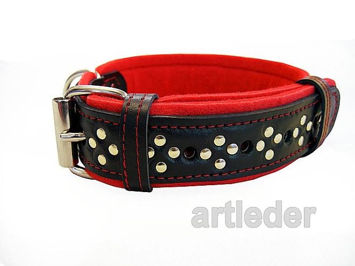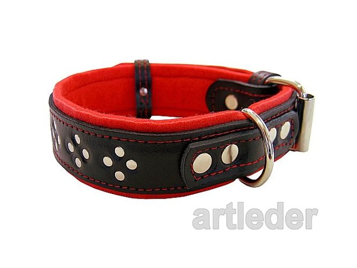 Podbicie z filcu. Materiał obuwniczy – nie farbuje, dobrze absorbuje pot, nie obciera sierści. Pełni zarówno rolę estetyczną, jak i chroni dodatkowo szyję Twojego psa.