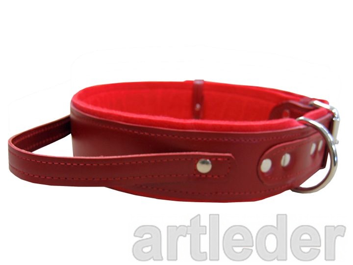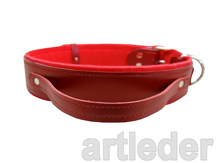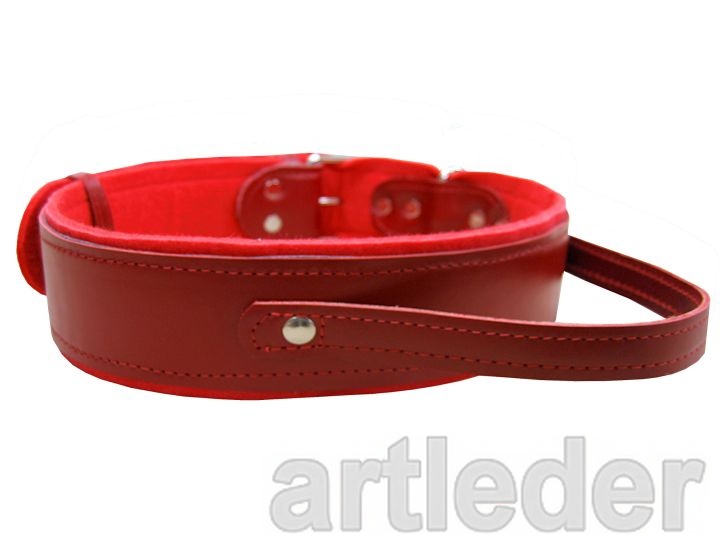 Rączka ma dwie warstwy skóry i wzmocnienie wewnętrzne taśmowe. Jest naszyta na obrożę i dodatkowo nitowana przez ukryte wewnątrz metalowe podkładki.