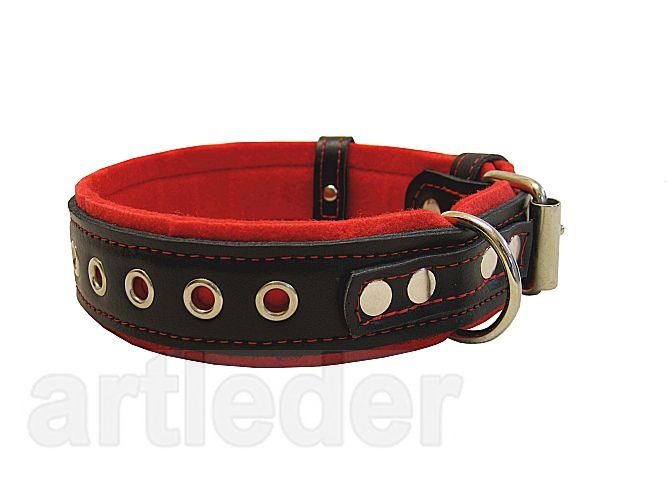 Podbicie z filcu. Materiał obuwniczy – nie farbuje, dobrze absorbuje pot, nie obciera sierści. Pełni zarówno rolę estetyczną, jak i chroni dodatkowo szyję Twojego psa.