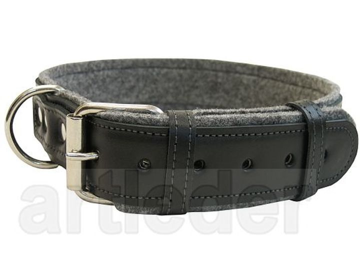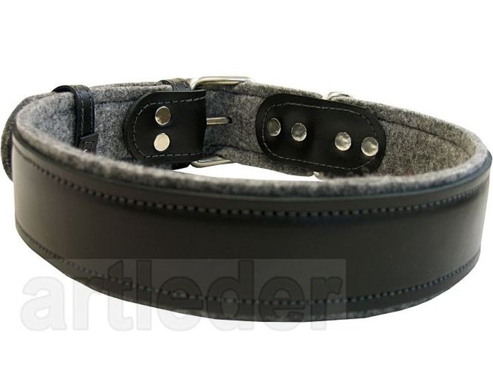 Podbicie z filcu. Materiał obuwniczy – nie farbuje, dobrze absorbuje pot, nie obciera sierści. Pełni zarówno rolę estetyczną, jak i chroni dodatkowo szyję Twojego psa.