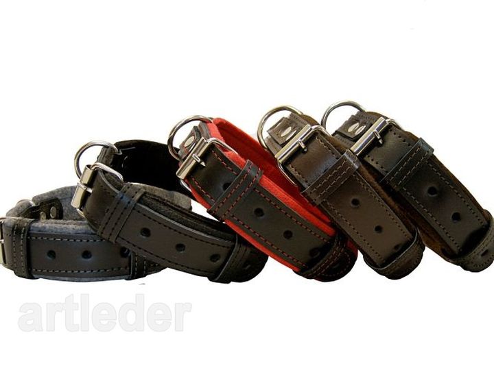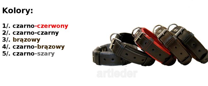 Dwie warstwy skóry plus materiał chemoutwardzany wewnątrz oraz podbicie dają mocną i wytrzymałą obrożę. Warstwy są sklejone i przeszyte.