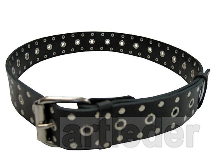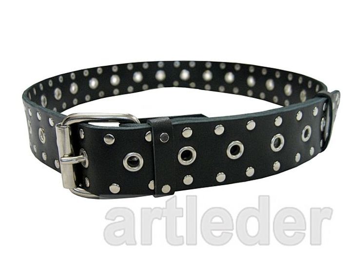 Na całej długości ozdobne nity / ćwieki, zaprasowane na prasie.