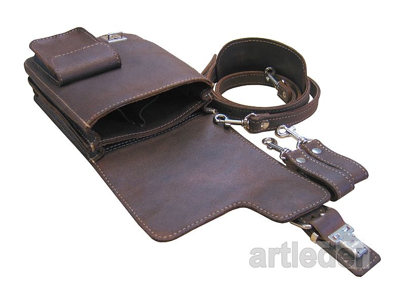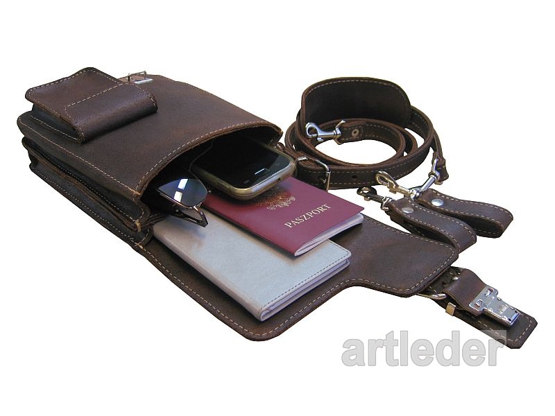 Saszetka / torba może być noszona na bojówkach na pasku od spodni lub po przepięciu pasa na ramieniu.